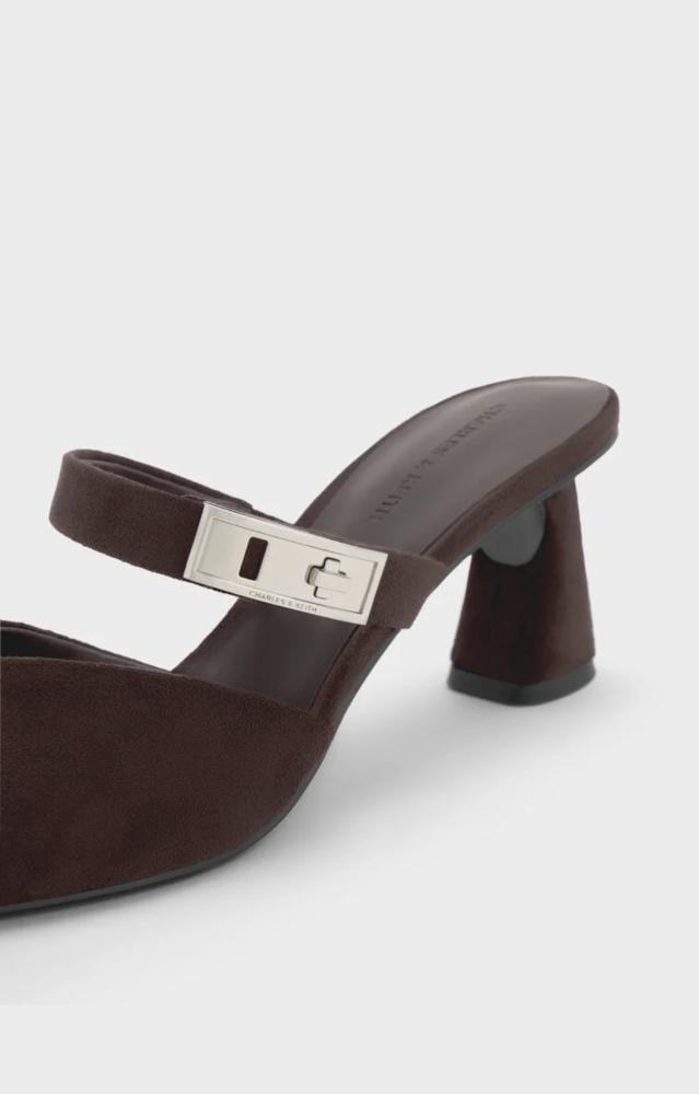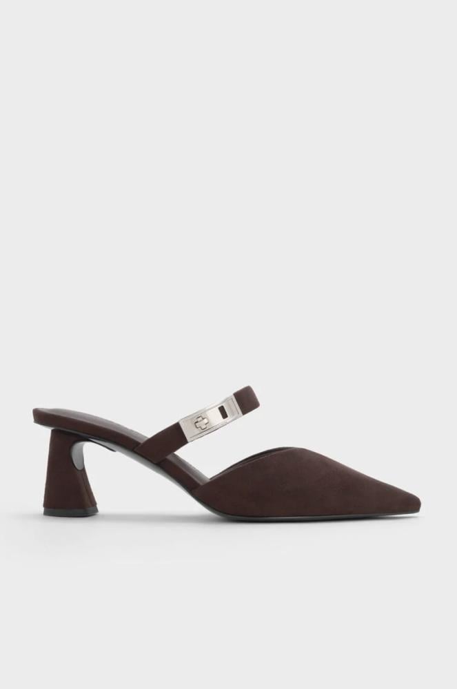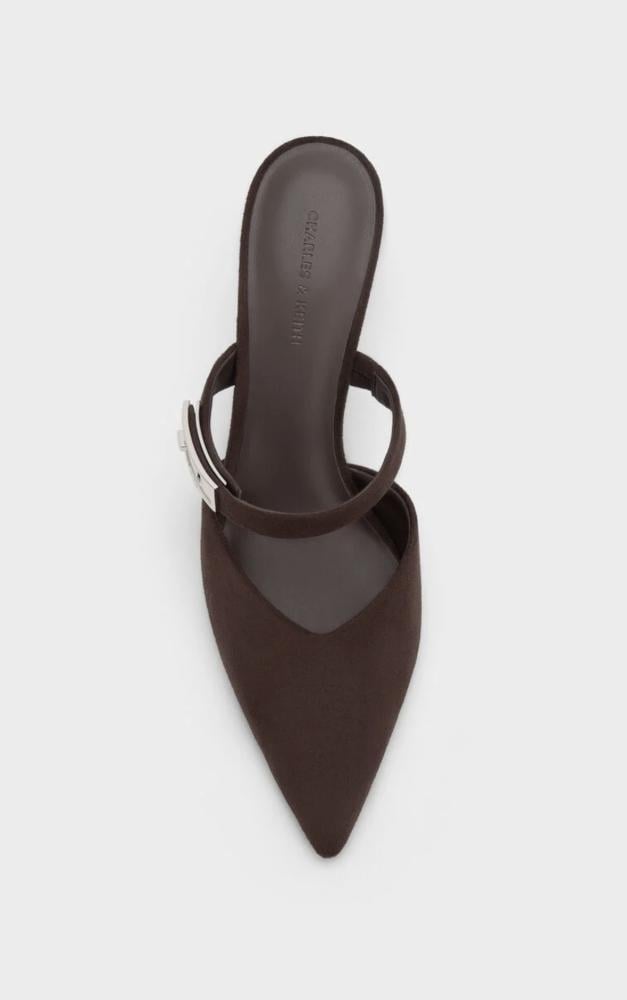 - Lando Faux Suede Pointed-Toe Metallic-Buckle Heeled Mules