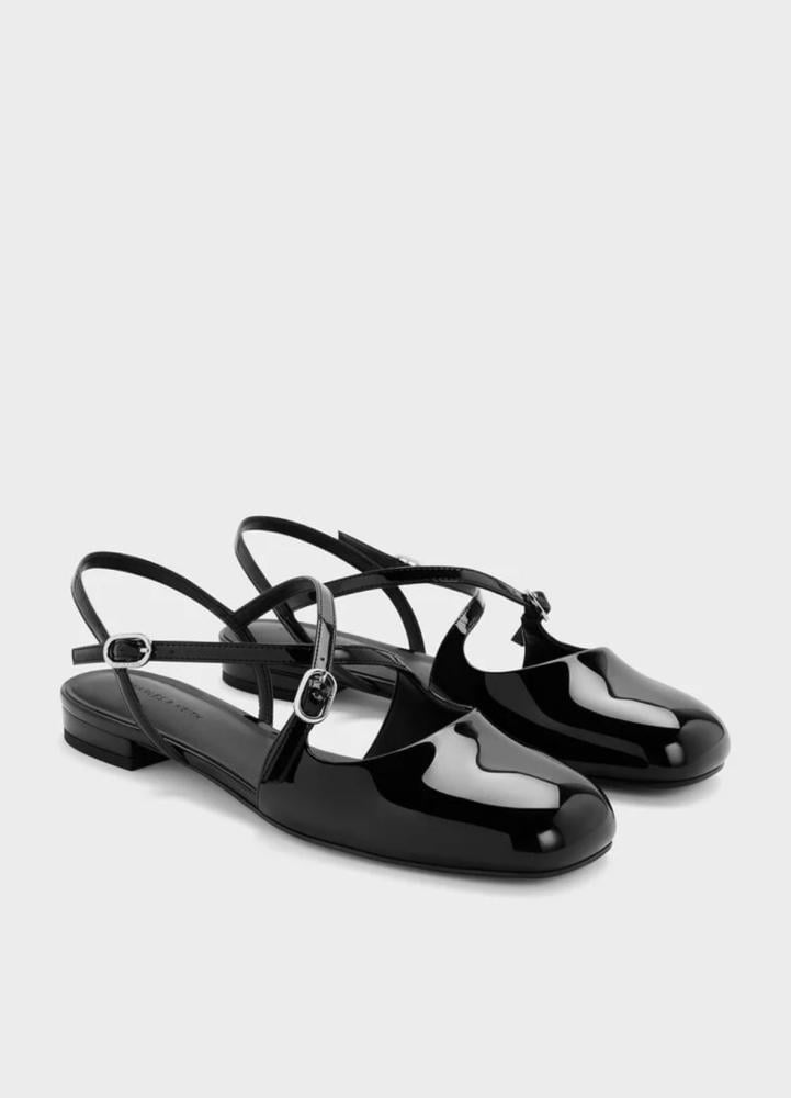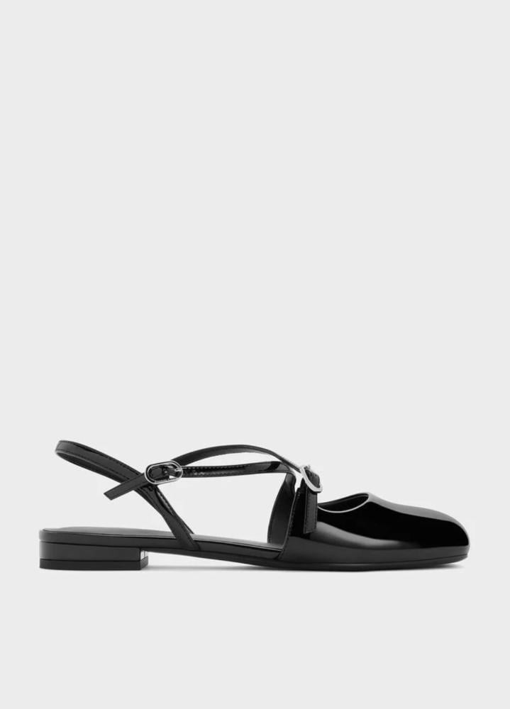 Patent crossover buckled slingback flatsاللون :Black patent المرفقات : يتوفر معه البوكس .المنتجات بالطلب من تشارلز اند كيث السنغافوري لا يوجد استرجاع أو استبدال .